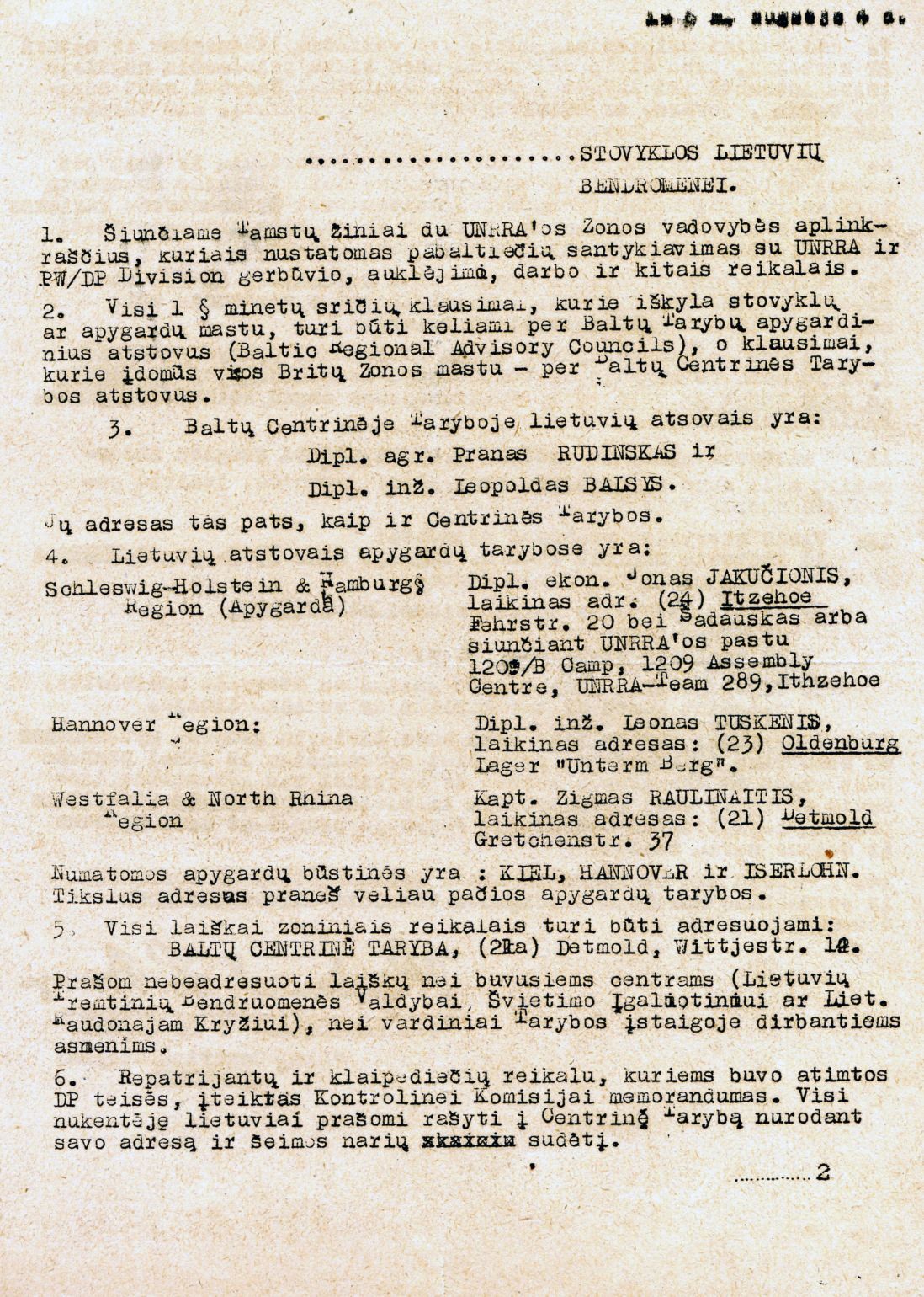 After the inspection in 1946 about 5 percent of people lost their displaced persons' privileges.The appeal of the Baltic Central Council representatives regarding cooperation with UNRRA |