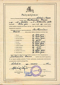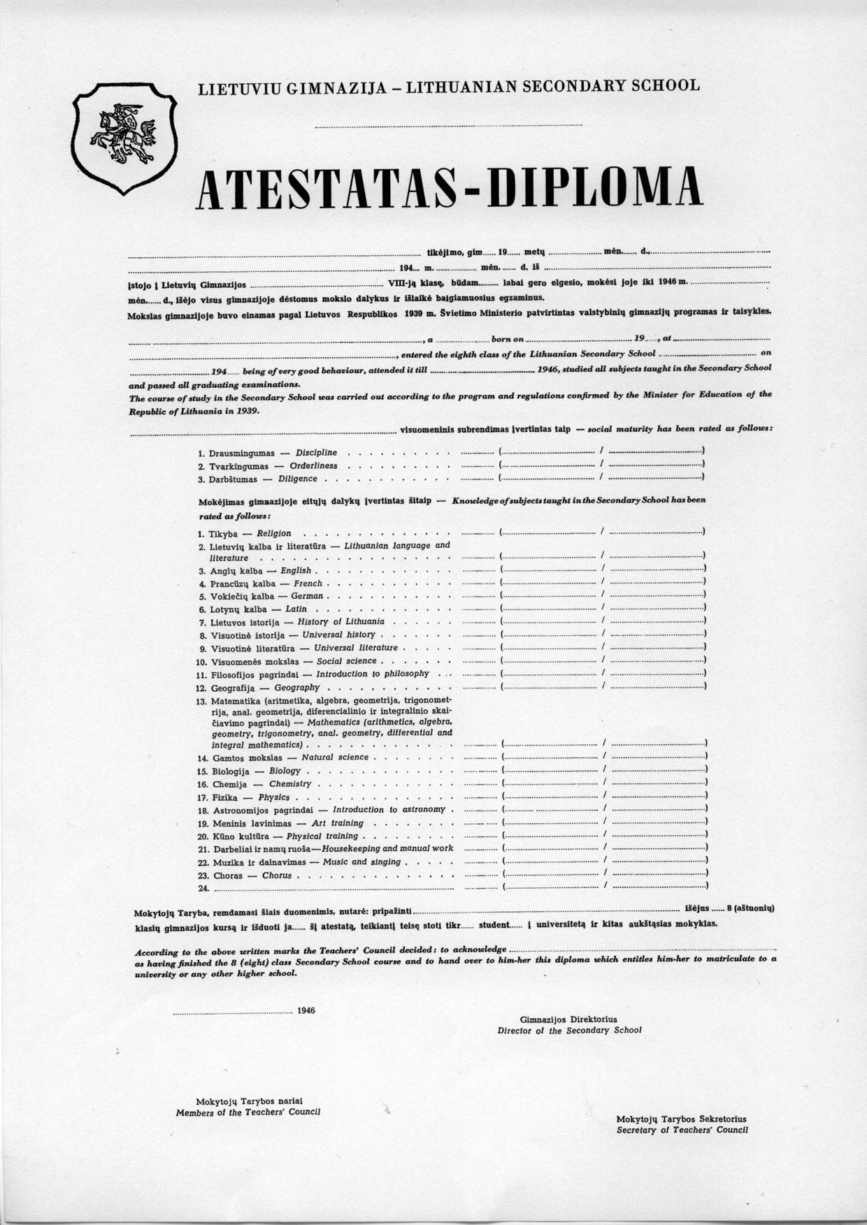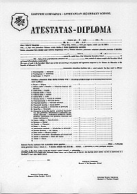 | Lietuvių gimnazijų atestato forma, iš asmeninio V. Bartusevičiaus archyvo |