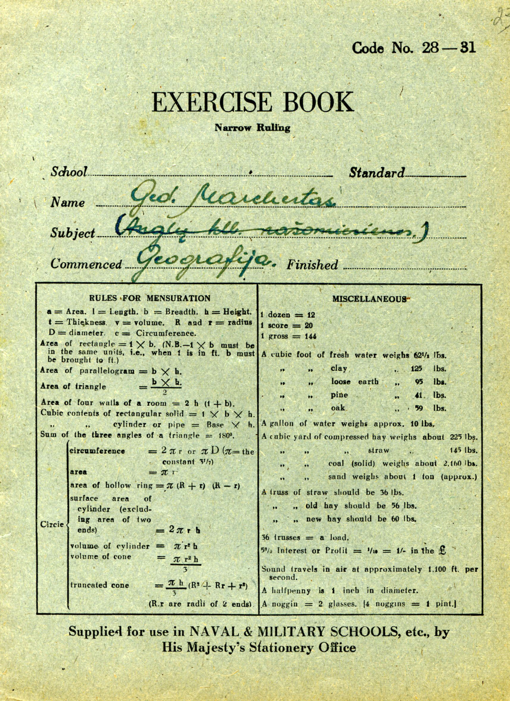 | Gimnazisto G. Marcherto geografijos užrašai, LNB RKRS F28:61 |