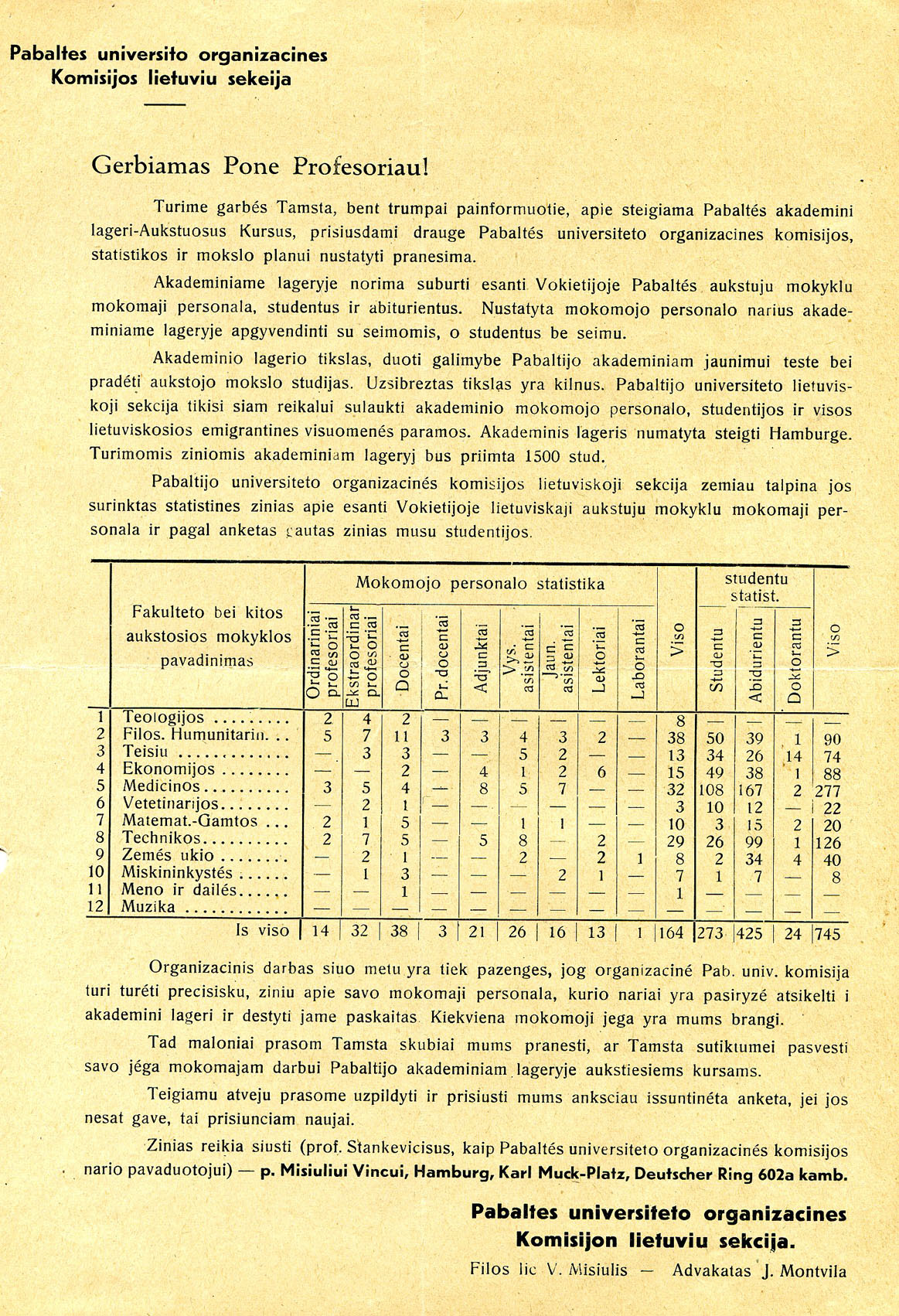 | Pabaltijo universiteto organizacinės komisijos lietuvių sekcijos kreipimasis, LNB RKRS F52:302 L |