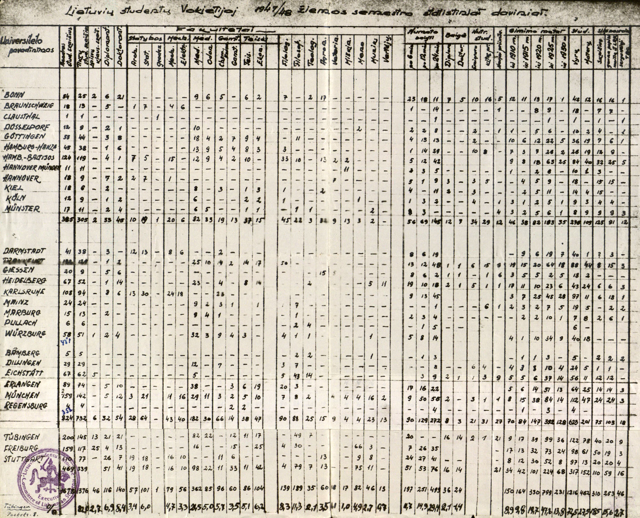 | Lietuviai studentai Vokietijoje: 1947/48 m. žiemos semestro statistiniai duomenys, LNB RKRS F52:304L |