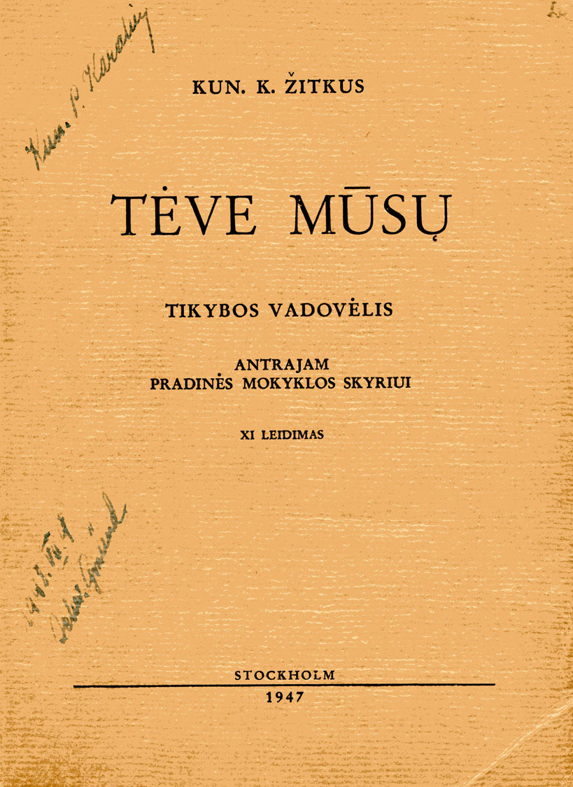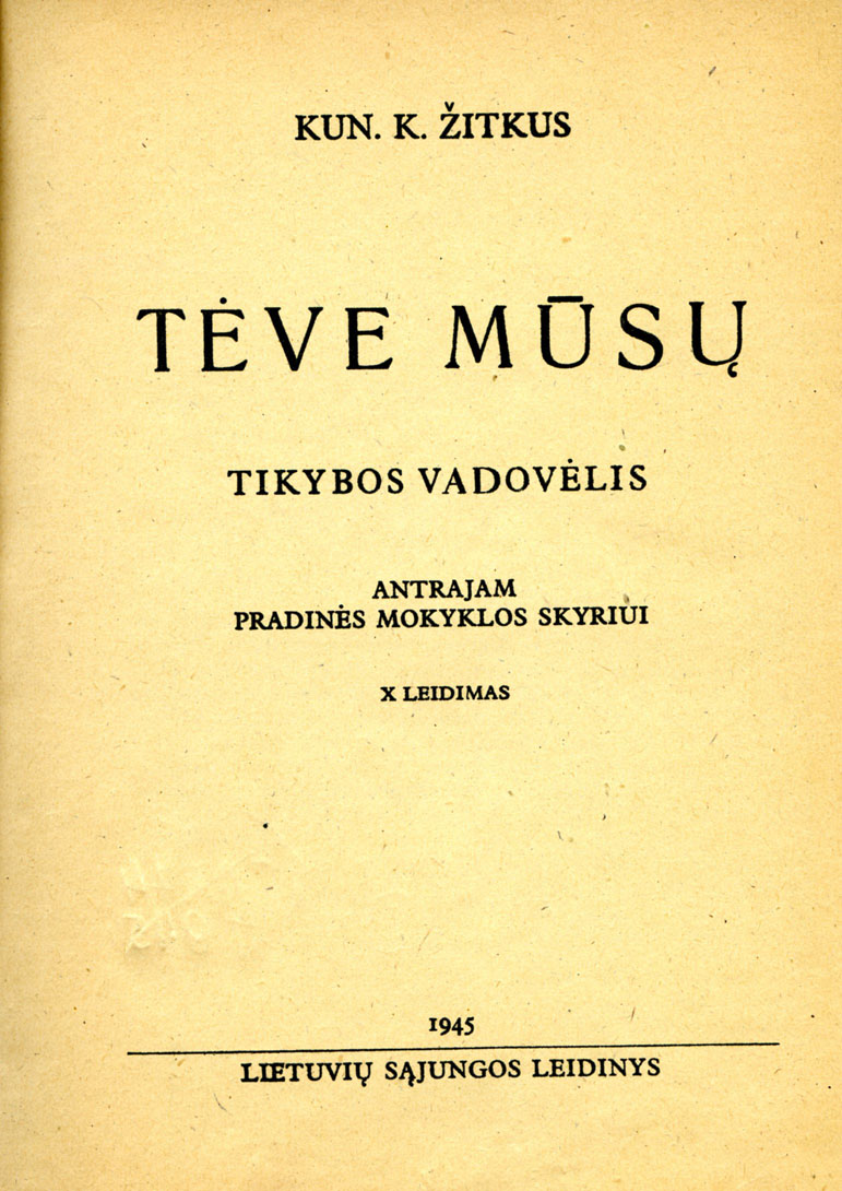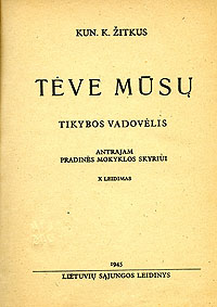 | K. Žitkus. Tėve mūsų : tikybos vadovėlis, Tübingen, 1945, LNB A(LKA) 28/945 |
