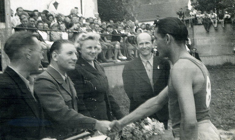 Po sporto varžybų Oberleningeno lietuvių DP stovykloje 1947 m.,