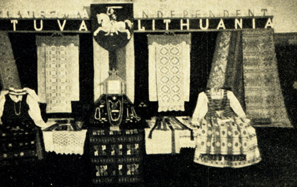 | Vasario 16-ajai skirta tautodailės paroda (dail. V. Dobužinskis) Viurcburgo lietuvių DP stovykloje, 1946 m. Svetimoj padangėj: Würzburgo lietuvių stovyklos metraštis, 1946, LNB A(LKA) 118/946 |