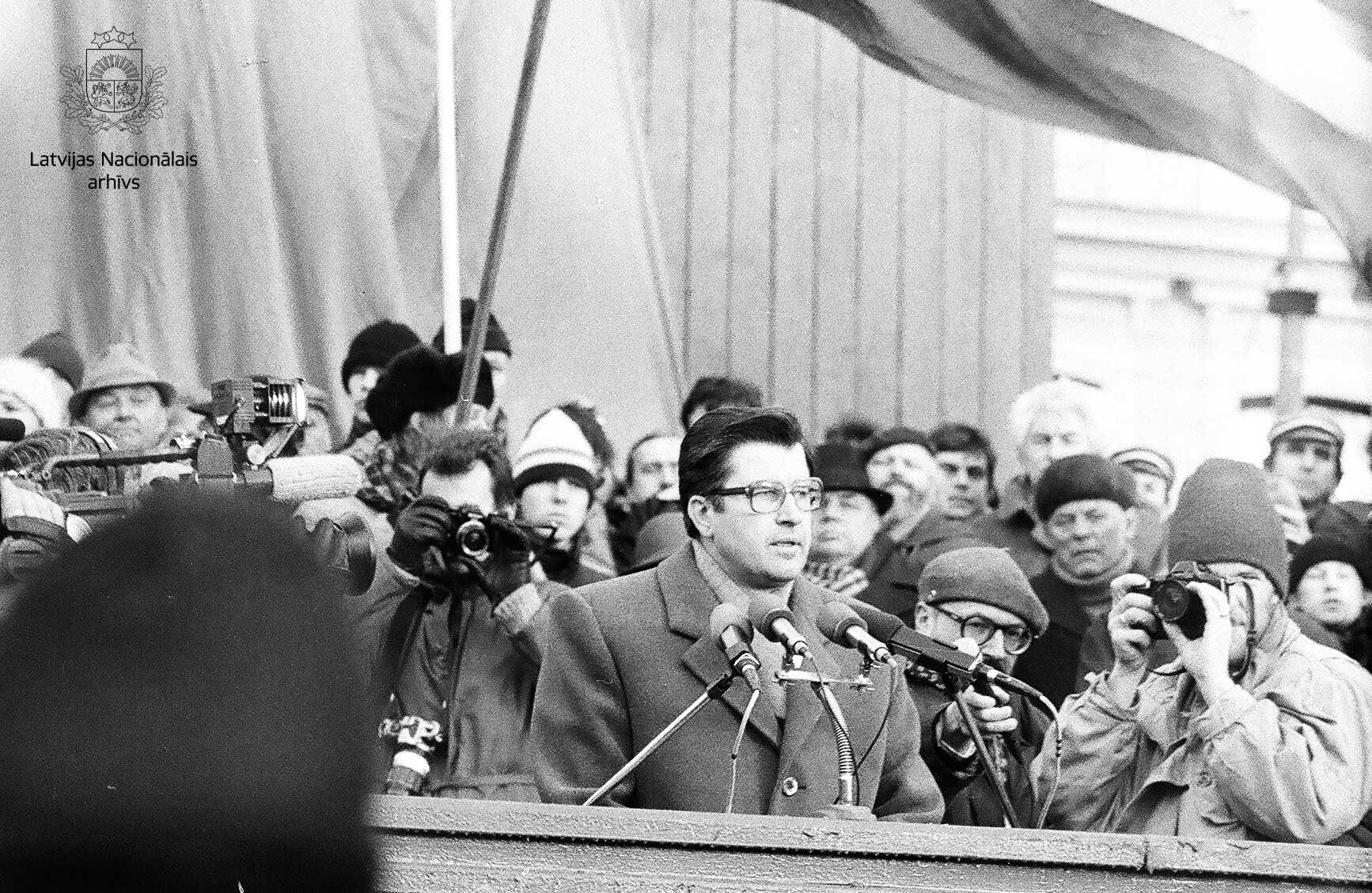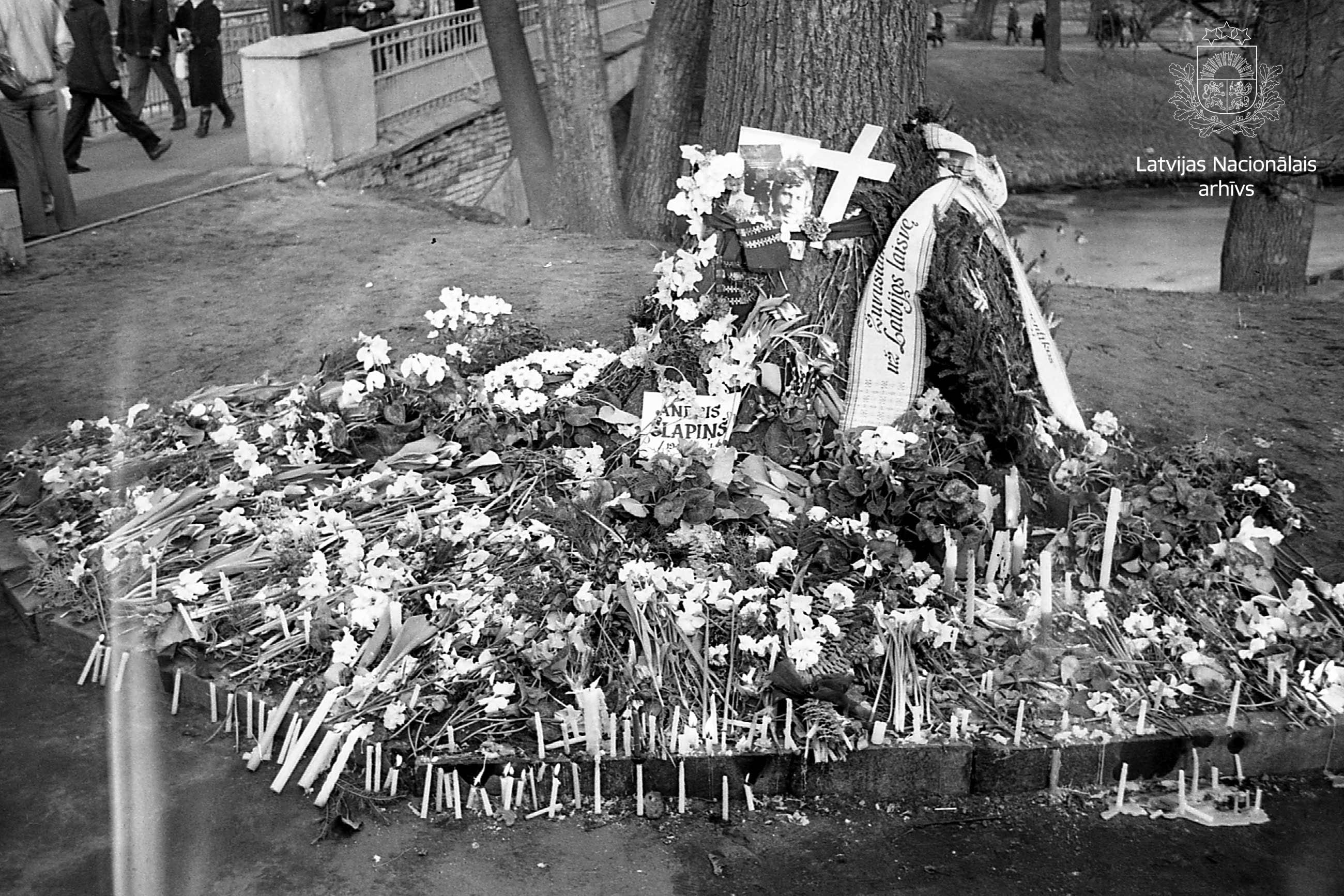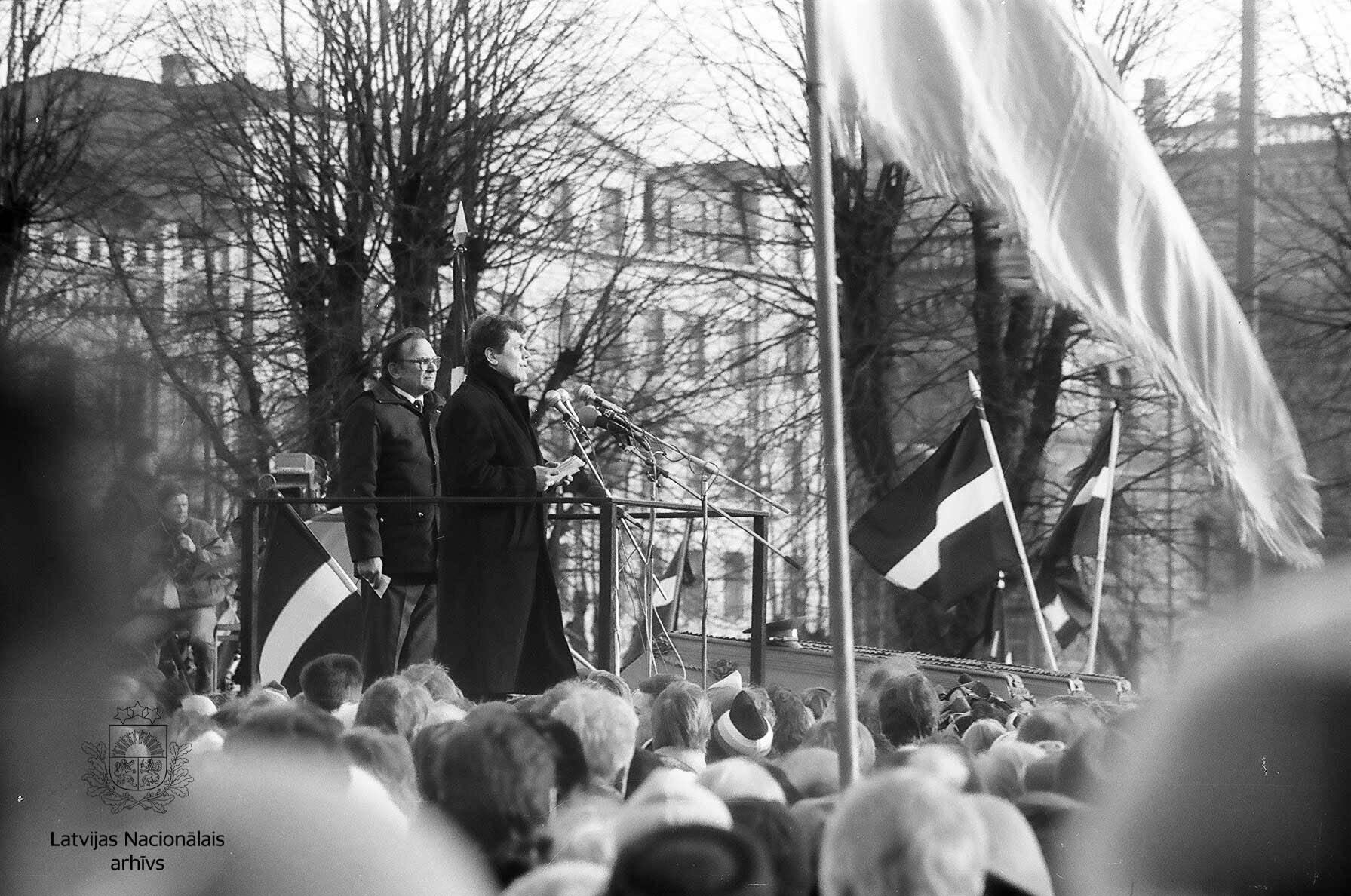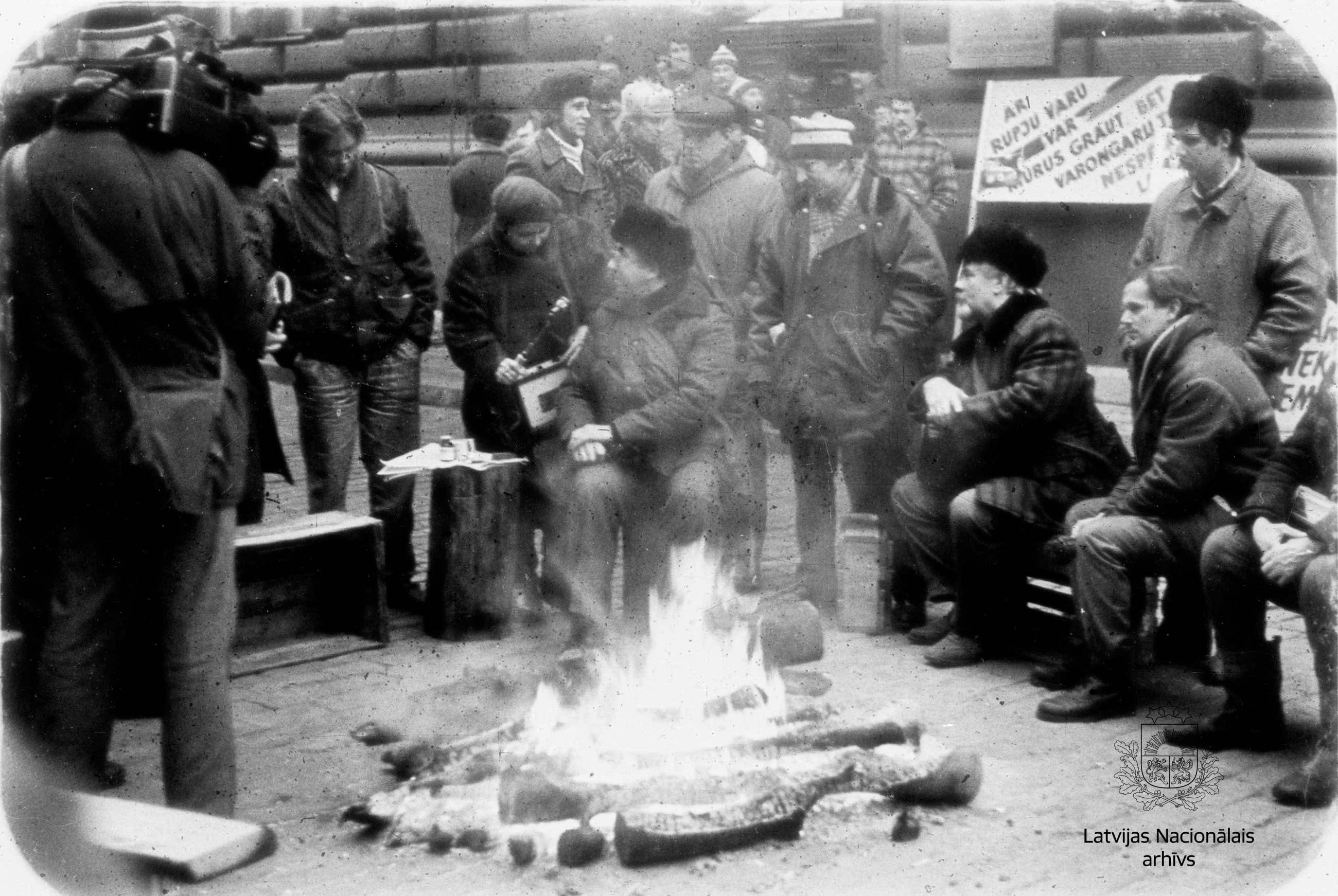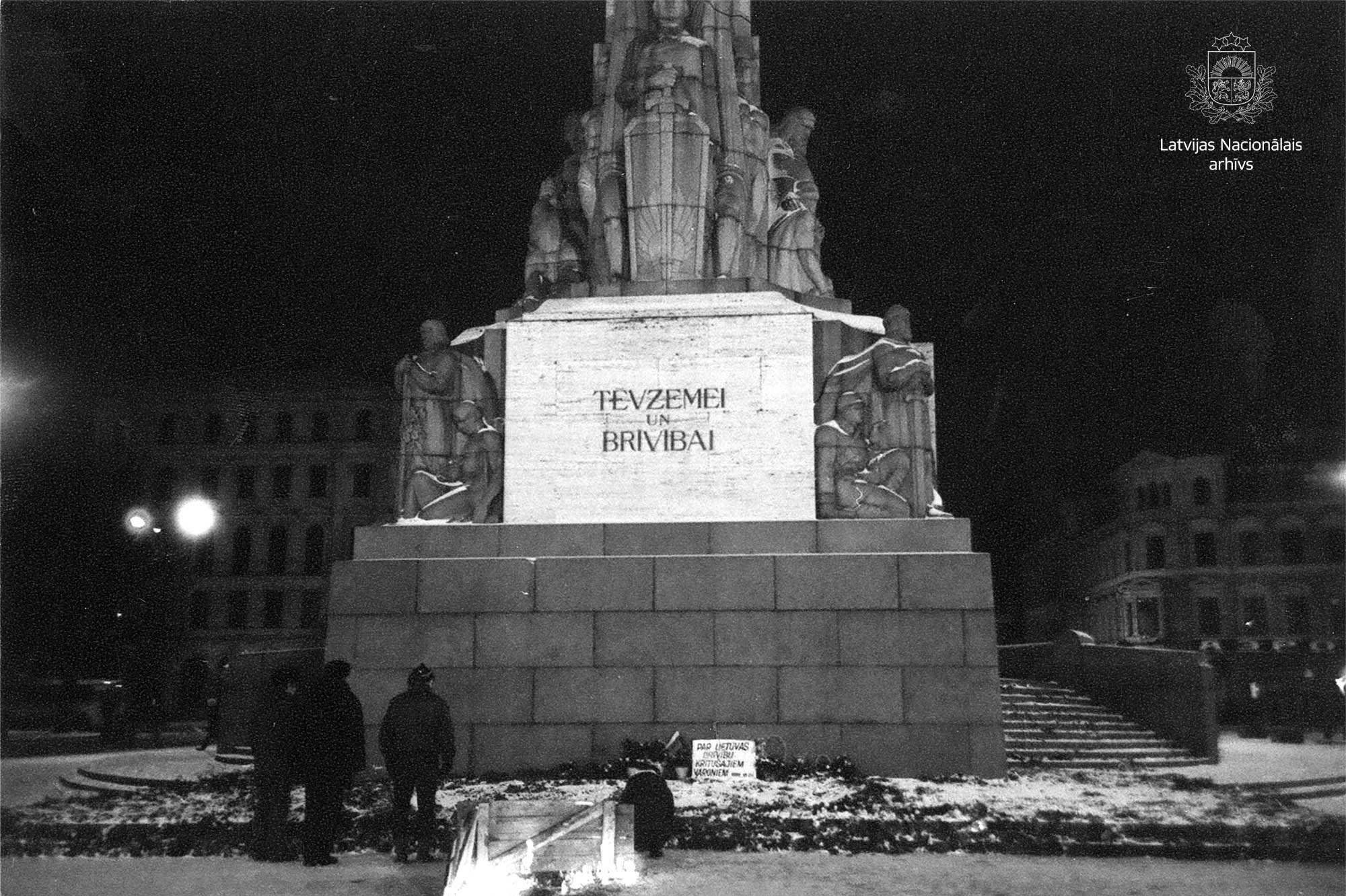 Fona attēls: barikādes Krišjāņa Barona un Dzirnavu ielu krustojumā. Rīga, 1991. gada 14. janvāris. Fotogrāfs P. Eglītis. LNA