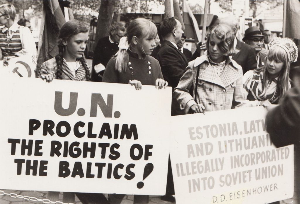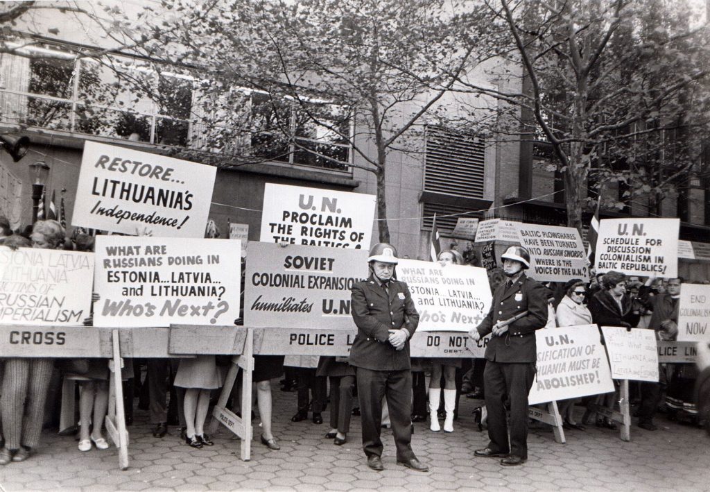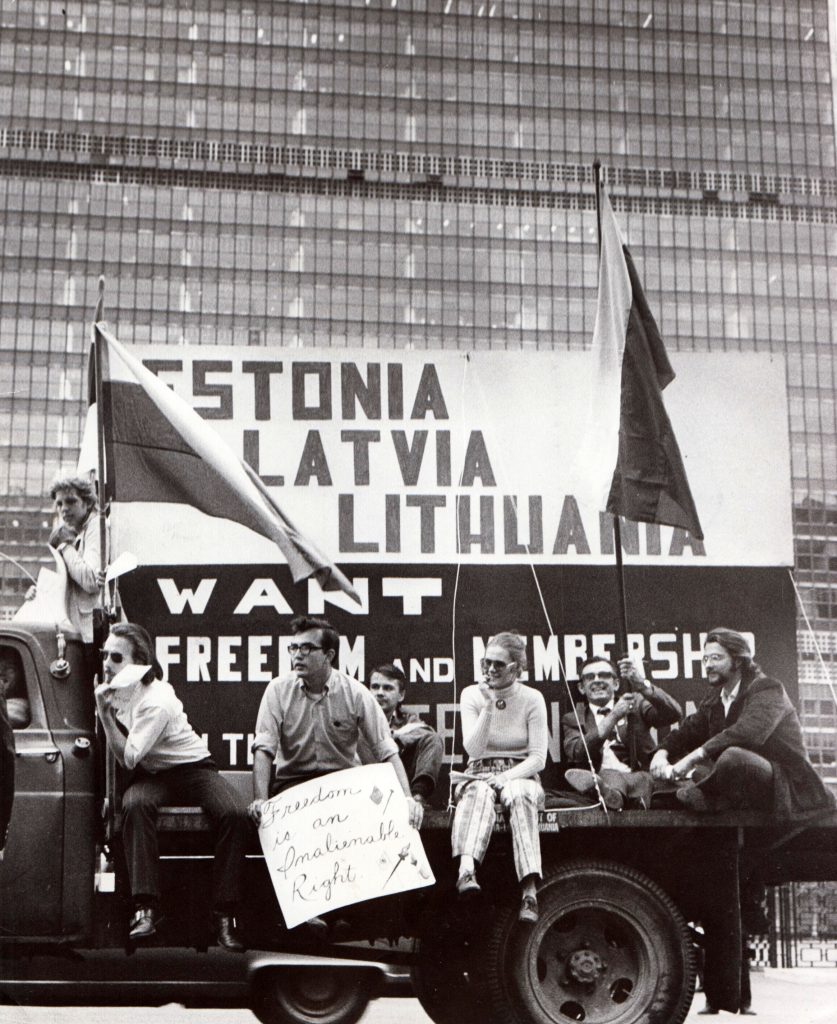 Baltic demonstration in front of the UN to protest Soviet aggression against Estonia, Latvia and Lithuania, 1970. Source: Juta Ristsoo private archive.