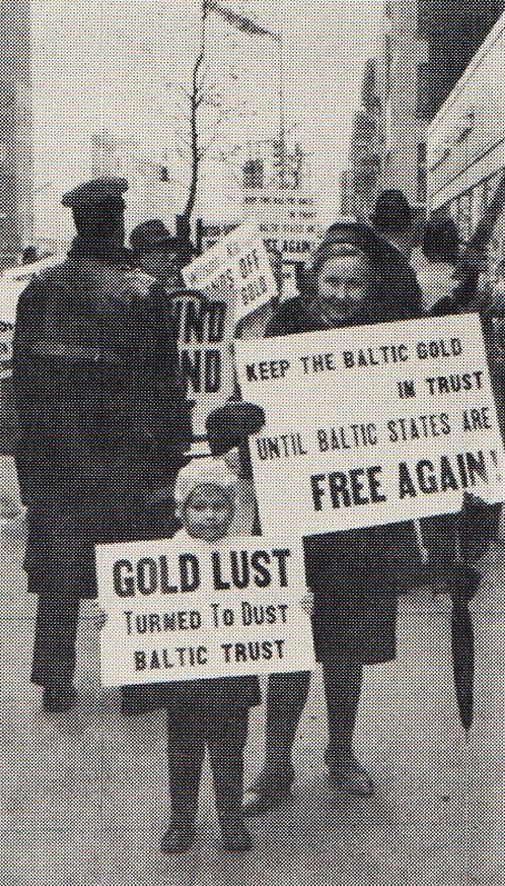 Baltics protest against embezzlement of the Baltic gold during the Operation Goldfinger campaign in New York. Source: LNA LVA F.2944.