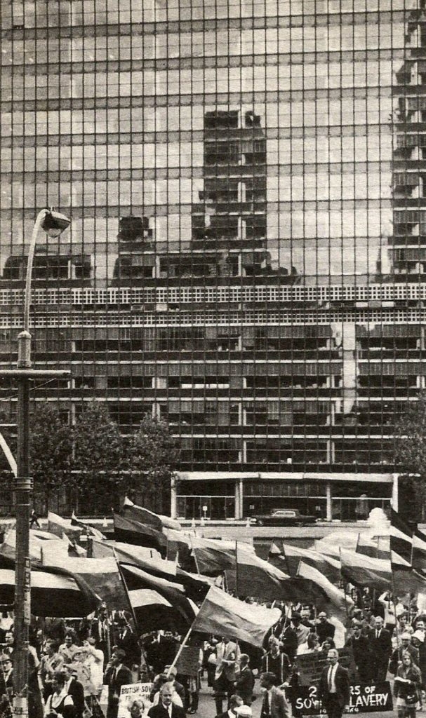 Baltic Youth for Freedom in front of the UN rallying for the freedom for Namibia, 1968. Source: LNA LVA F.2944
