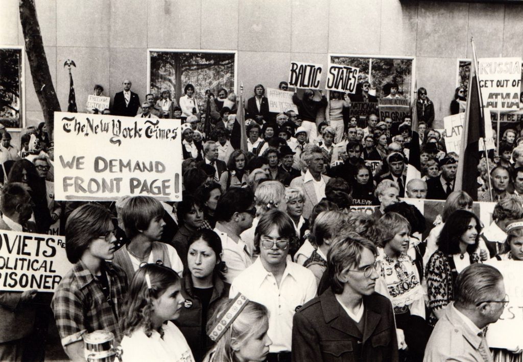 The demonstrators’ demand was simple: they wanted to have a meeting with the editorial staff of the Times, to discuss why the newspaper never reported on any Baltic news. After some negotiating, agreement was reached and a meeting was scheduled. Thereupon, the young activists got back on the truck and rode through nearby Times Square shouting slogans to ‘Free the Baltic States’. Their victory lap was filmed and broadcast on the TV news that night.