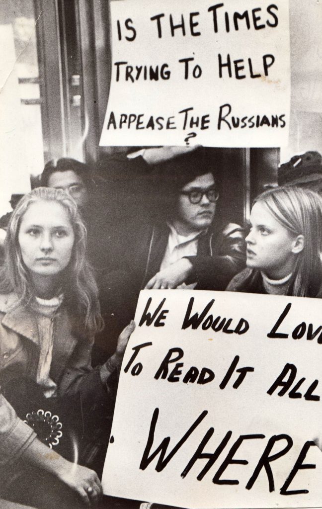 Young people during sit-in protest at the New York Times entrance, 1970. Photo by Gunars Lucans. Source: LNA LVA F.2944.
