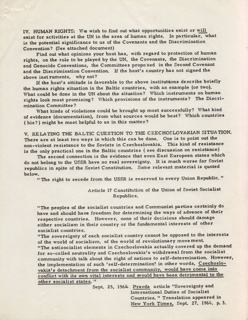 Instructions for the Baltic delegations to UN during the period from December 1968 to February 1969. Source: LNA LVA F.2944: