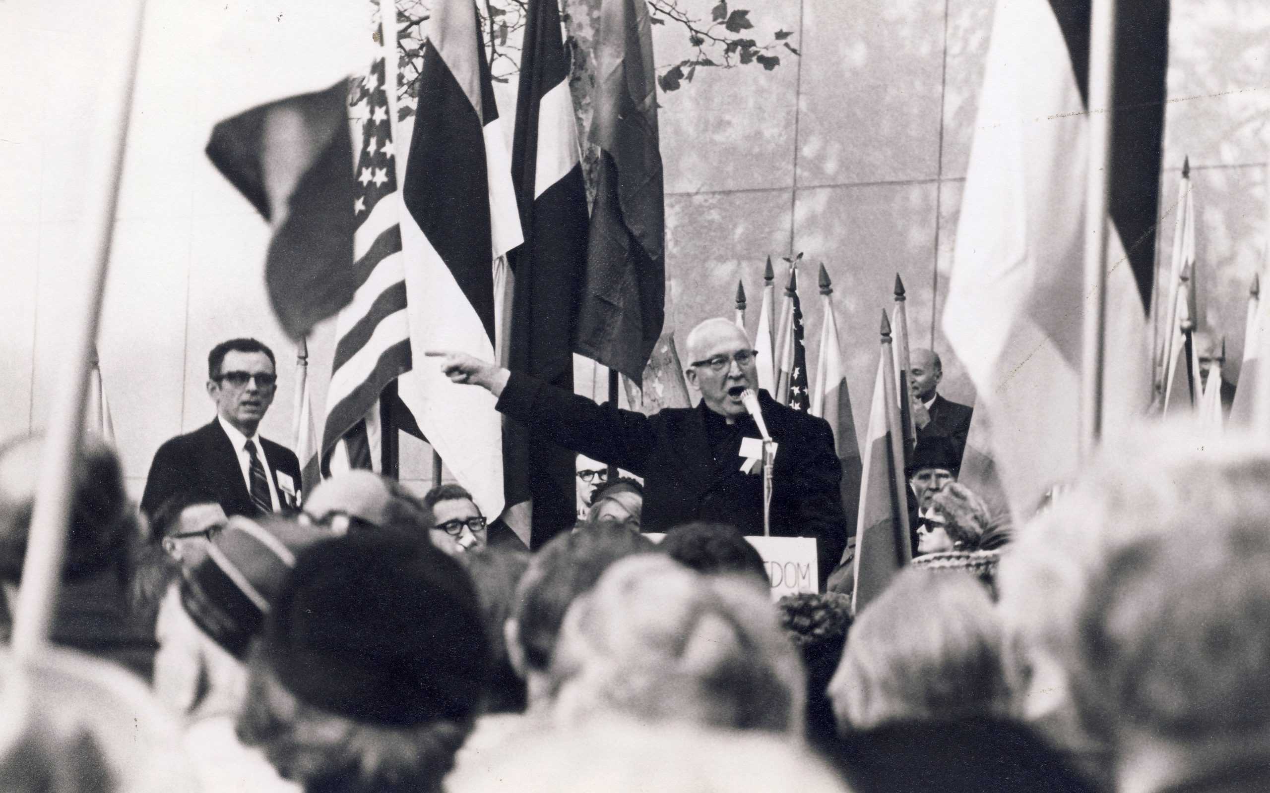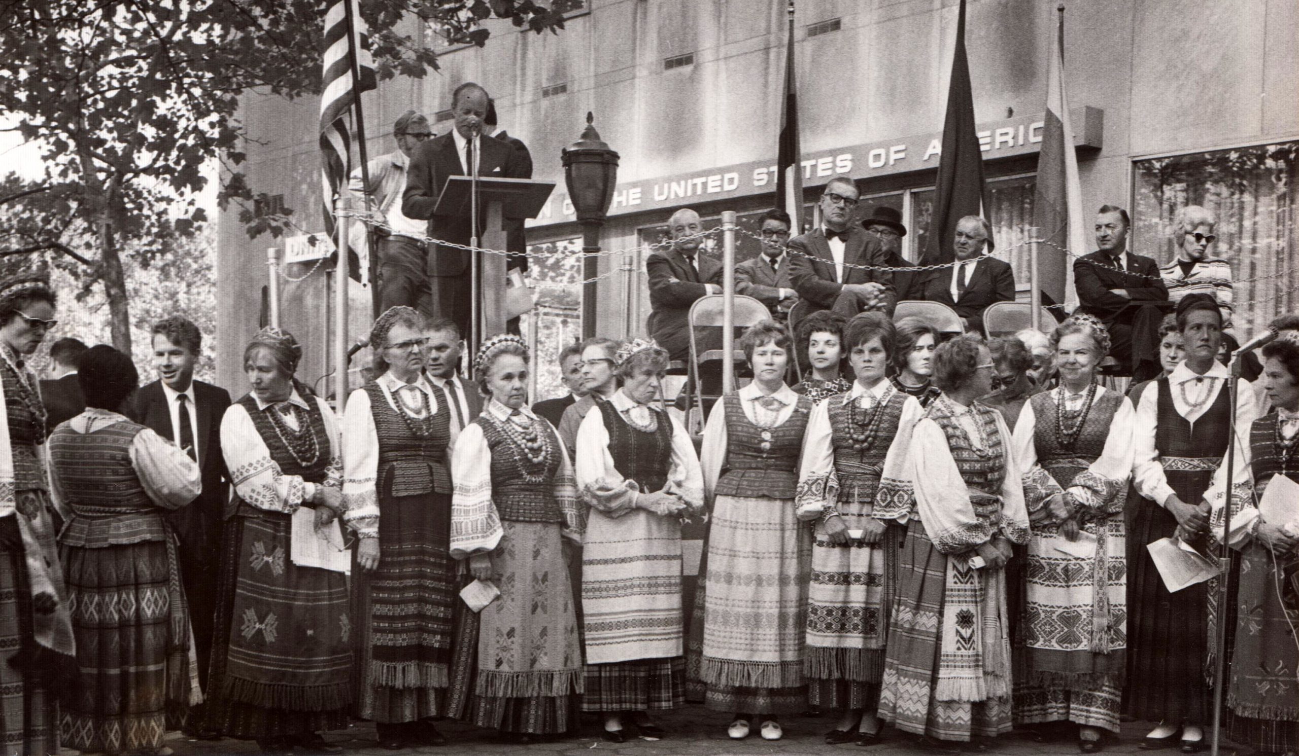 Jonas Balkunas speech at Hammarakjold Plaza near the UN building, 1970. Source: Museum of the Occupation of Latvia.