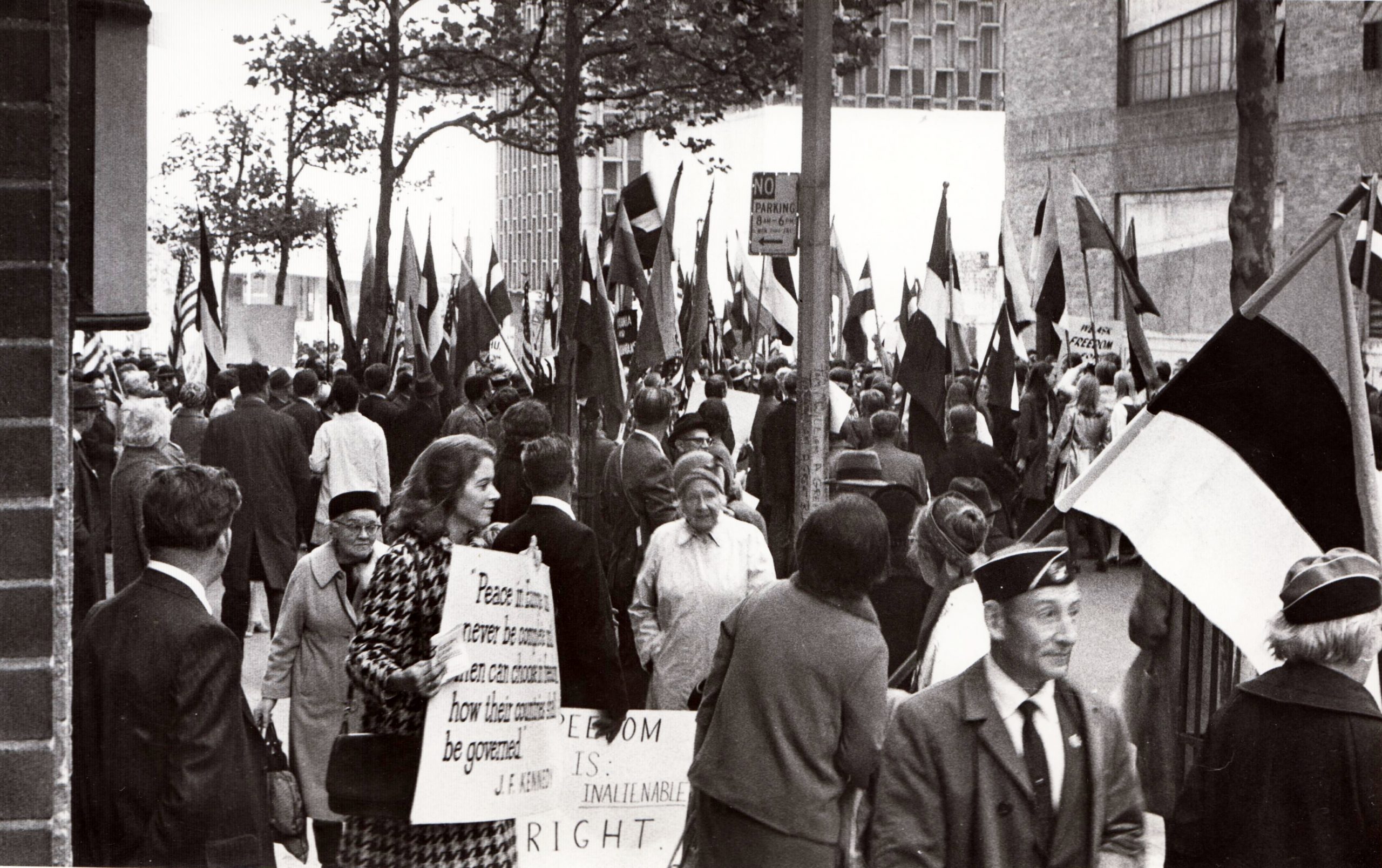 Baltic demonstration in front of the UN to protest Soviet aggression against Estonia, Latvia and Lithuania, 1970. Source: Juta Ristsoo private archive.