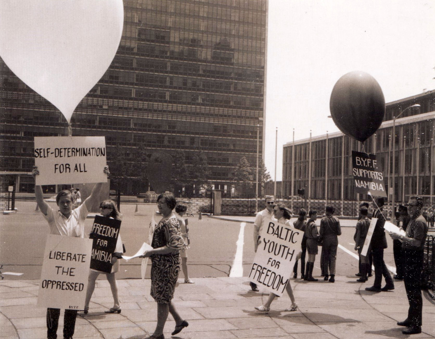 Baltic Youth for Freedom in front of the UN rallying for the freedom for Namibia, 1968. Source: LNA LVA F.2944
