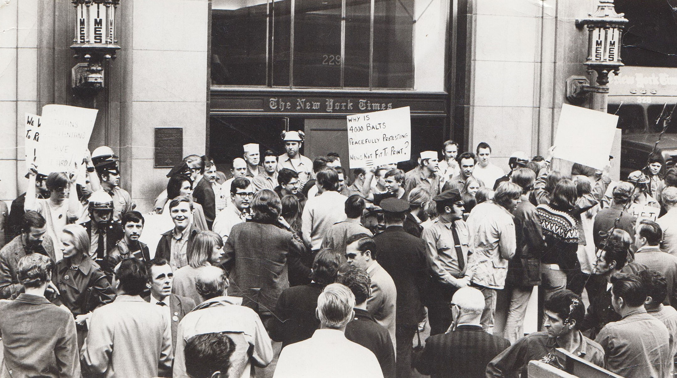 Young people during sit-in protest at the New York Times entrance, 1970. Photo by Gunars Lucans. Source: LNA LVA F.2944.