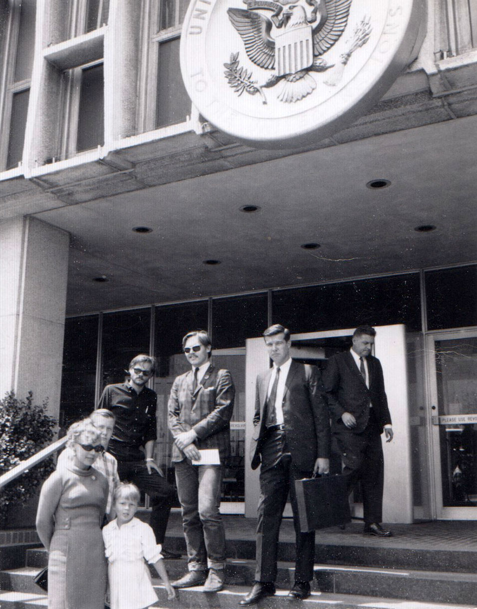 BATUN representatives at the entrance to the building of the US permanent mission of the UN in New York at the end of the1960s. Source: LNA LVA F.2944.
