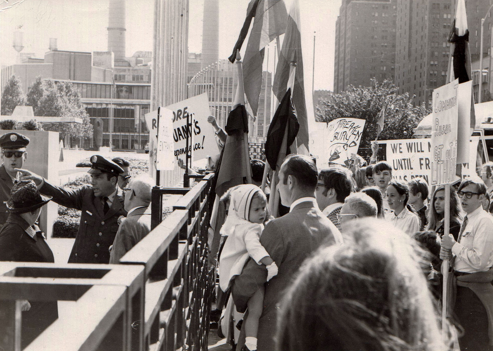 The UN gates were slammed shut for Balts during the rally on September 20, 1969. Photo by L.Tamosaitis. Source: LNA LVA F.2944.