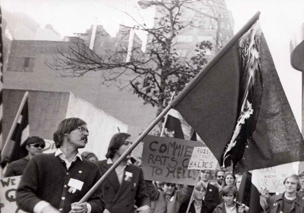 The 60’s were a time of great turmoil in the US – with large numbers of young people protesting for civil rights and against the Vietnam War. Seeing all this, many young Baltic-Americans thought that the Baltic cause could also benefit from some more active measures. So, Baltic Youth for Freedom or BYFF which specialized in street demonstrations was formed in 1968 to be the activist arm of BATUN and engage in proactive political activities that were slightly outside BATUN’s scope as a non-profit organization. BYFF was comprised of a corps of activists that could be mobilized on short notice as a response to events in the Baltic States. It was, in fact, the youth wing of the organization and consisted of students and other young people who were anxious to participate in a visible way. As events in the Soviet Union and Eastern Europe entered a new phase in the 1980s, BYFF’s become less active.