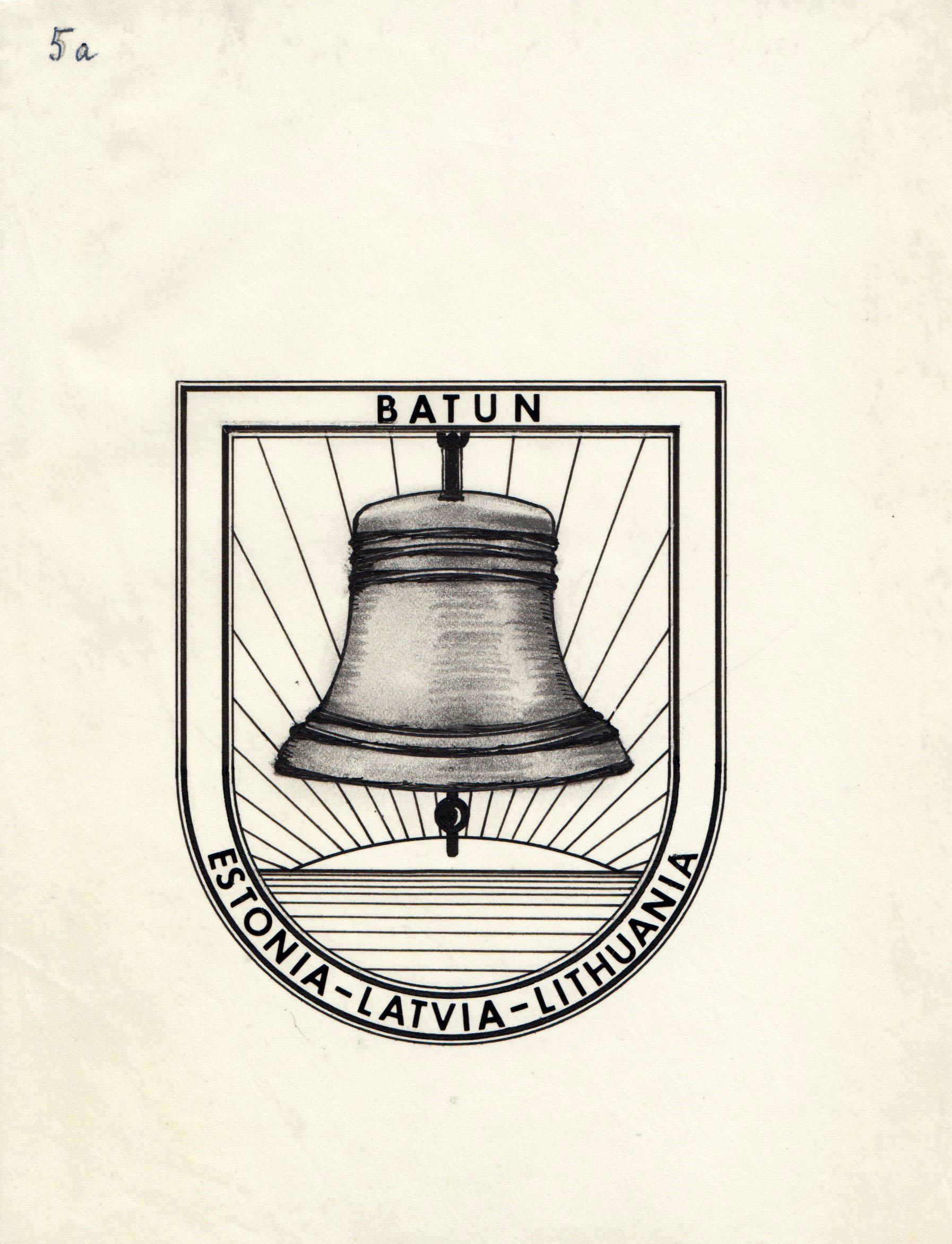 After BATUN was established, the question of the organization’s visual identity arose. In 1966, BATUN announced a competition in the exile press for a logo design that would symbolize the organization’s mission and could be used in print and elsewhere. The logo had to be symbolic and easy to replicate. A monetary prize was announced and artists were invited to submit their ideas. The invitation generated a great deal of interest in the Baltic exile media. Sixty-nine designs from 22 Baltic artists in the US, Canada, Australia and Europe were submitted. Representatives of Baltic organizations and the Ambassador of South Vietnam to the UN were chosen as the jury. On January 28, 1967, BATUN chose Latvian artist Ilmārs Rumpēteris’s design as its logo. The BATUN logo is a stylized letter B (comprised of a backwards number three and arrow pointing westward in a field of red) and symbolizes the unified effort of the three Baltic states to escape from the Soviet occupation that encircles them.