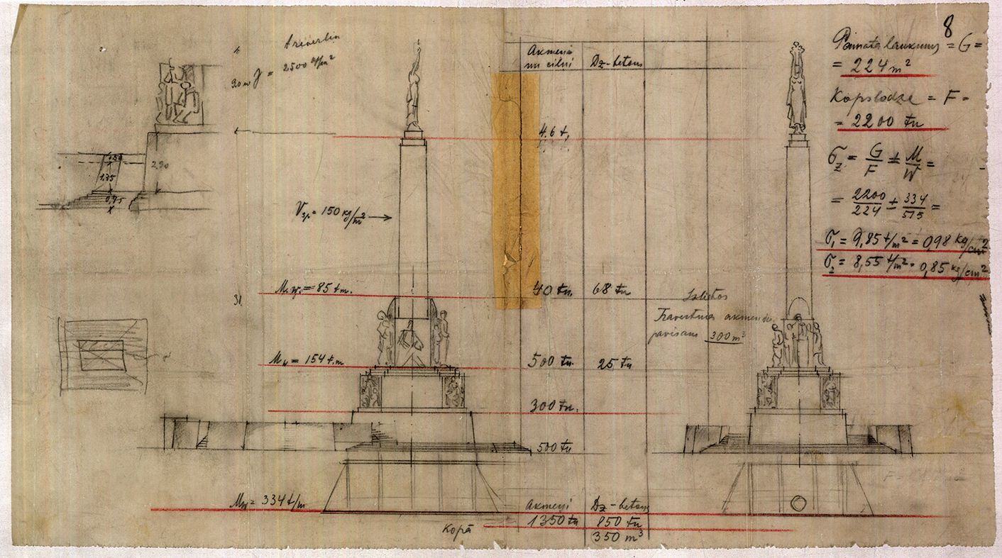 9. Brīvības pieminekļa projekts. Griezums. Variants B. 1933. gada 11. aprīlis.