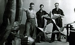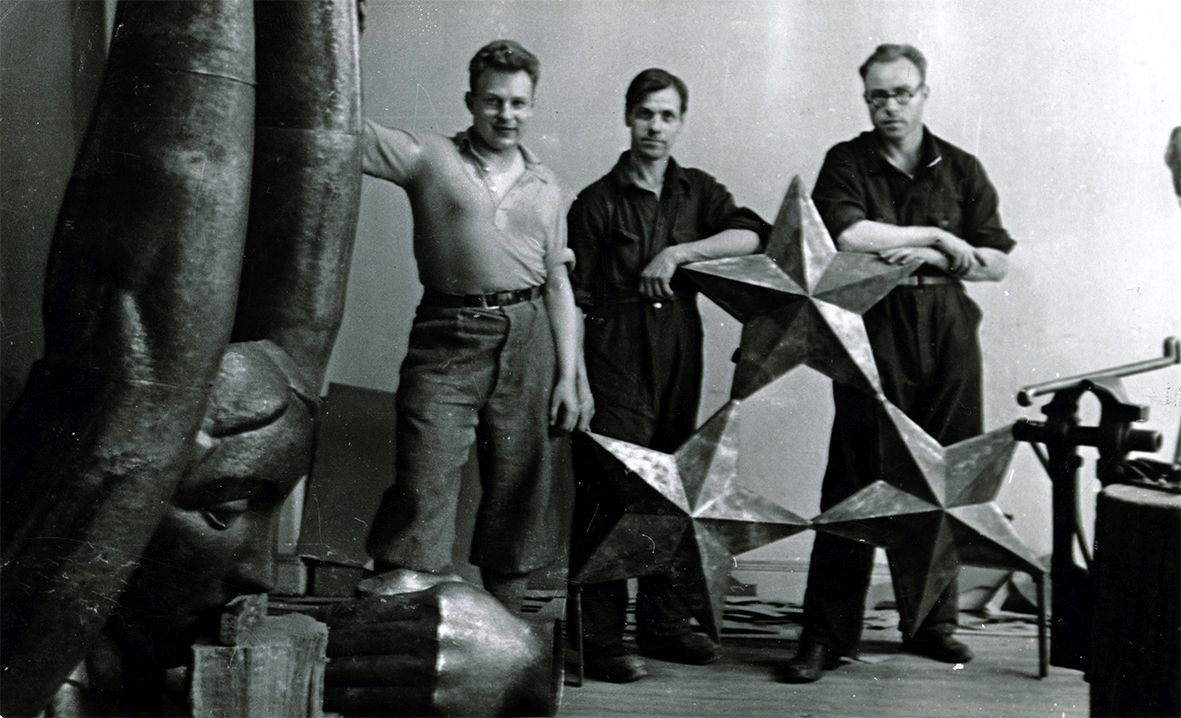 5. Metālmākslinieks Ragnārs Mirsmedens (1889-1989) (Zviedrija) Brīvības tēla kalējs. (otrais no kreisās)