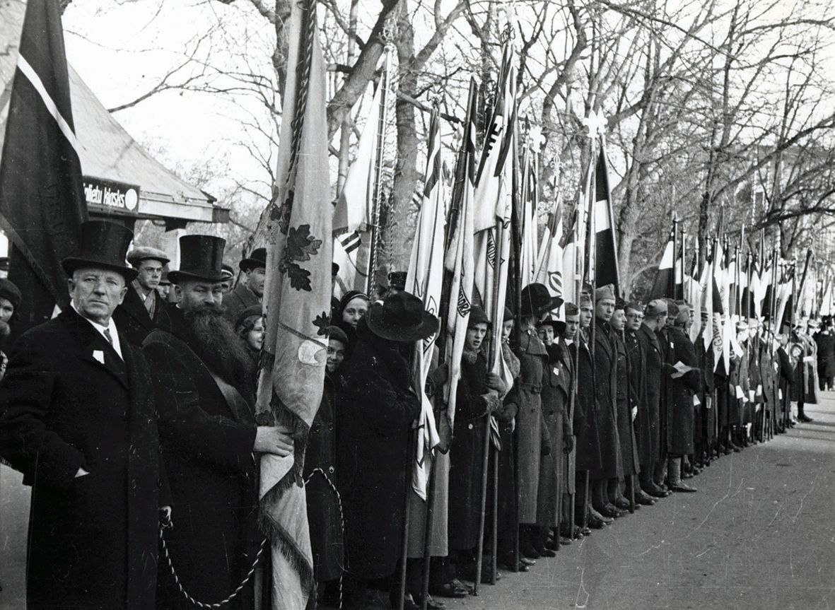 3. Sabiedrisko organizāciju pārstāvji Brīvības pieminekļa atklāšanas ceremonijā.