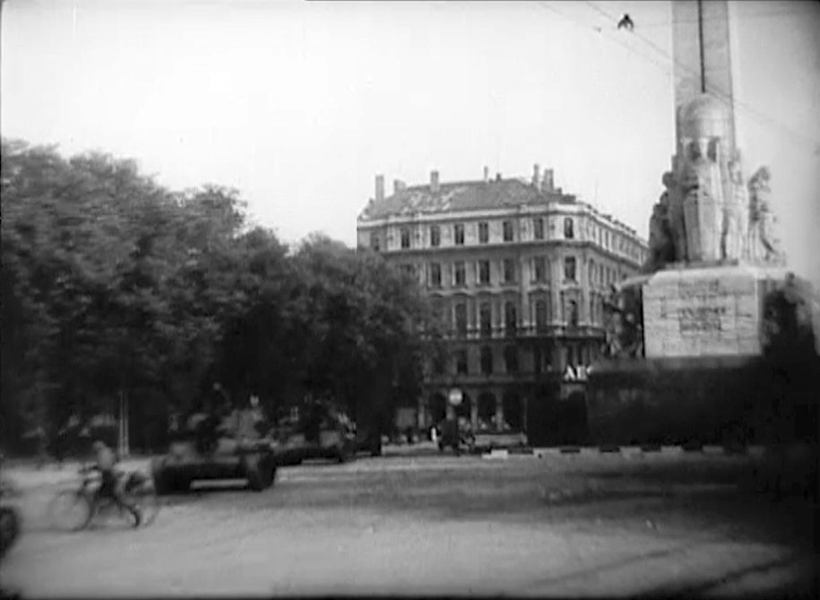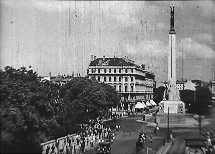 8. Skats uz Brīvības pieminekli no Brīvības bulvāra un Aspazijas bulvāra krustojuma. 20. gs. 40. gadi.