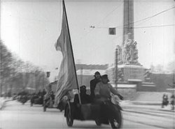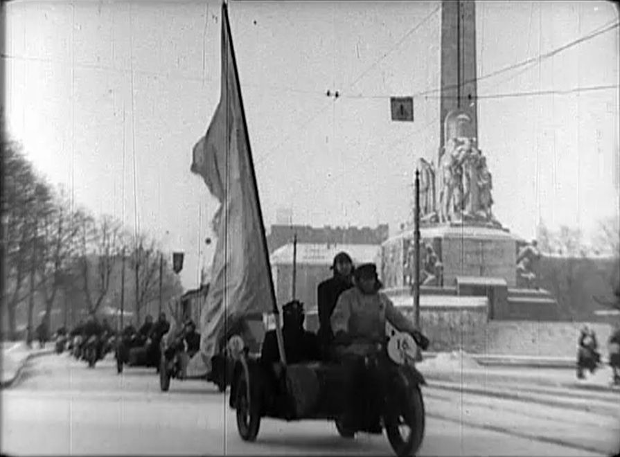 7. Par godu Latvijas PSR Augstākās Padomes vēlēšanām motociklisti brauc gar Brīvības pieminekli.