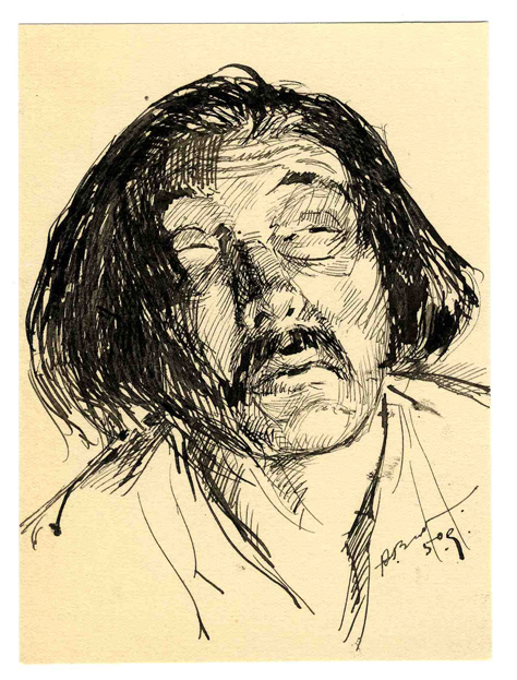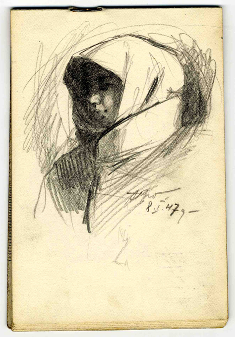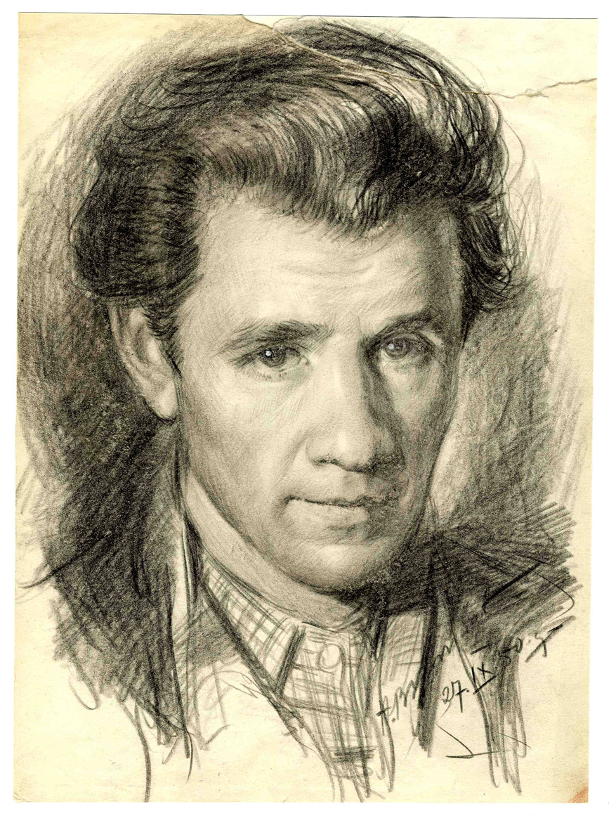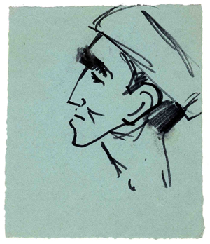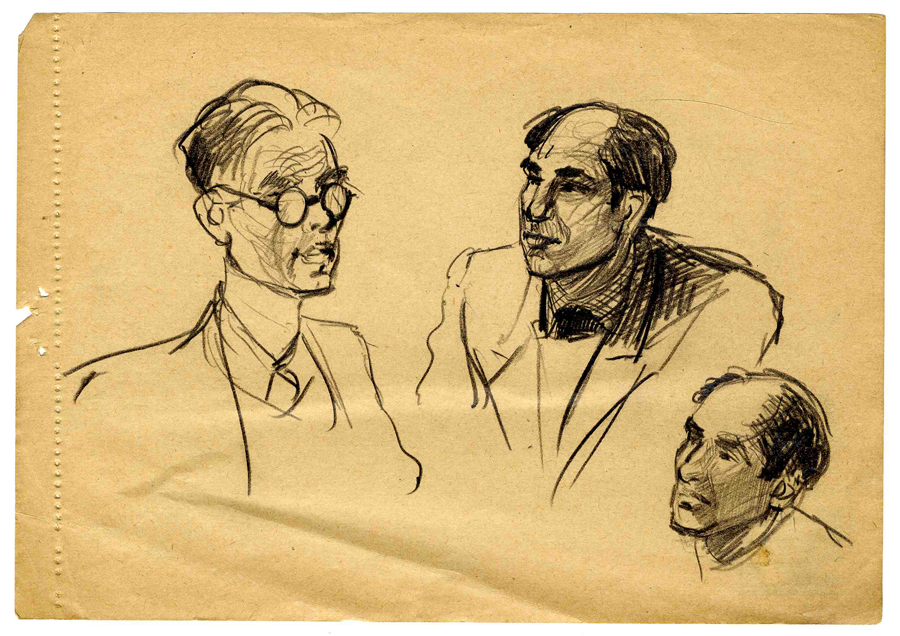 No skiču bloka. Portreta skice. 1947.