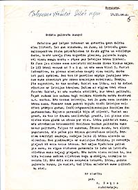 Letter from teacher A. Sveķe to A. Šilde. 15 November 1944.