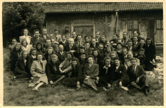| Ausekļa ģimnāzijas 5. izlaidums. Augsburgas Hohfeldes DP nometne. 1949. gada 4. februāris. LVA, 2250. f., 2v. apr., 5. l., 12. lp. |