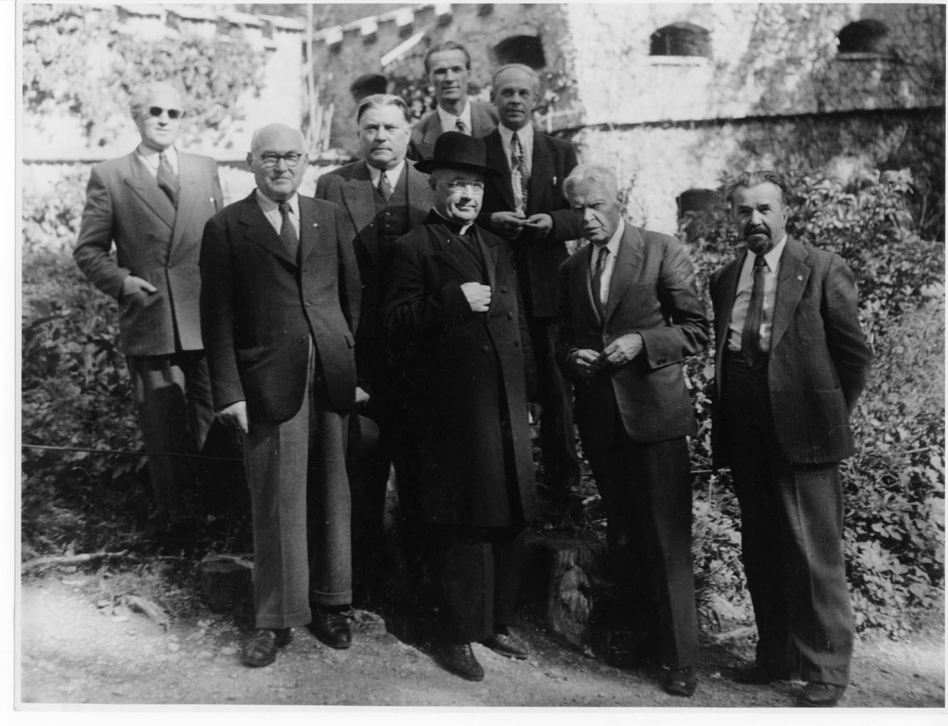 | President of United American Lithuanian Fund (BALF) J.B. Končius with the members of Lithuanian Red Cross and (VLIK) in Schloss Lichtenđtein. 1950 Lithuanian Cultural Institute in Germany (LKI) |
