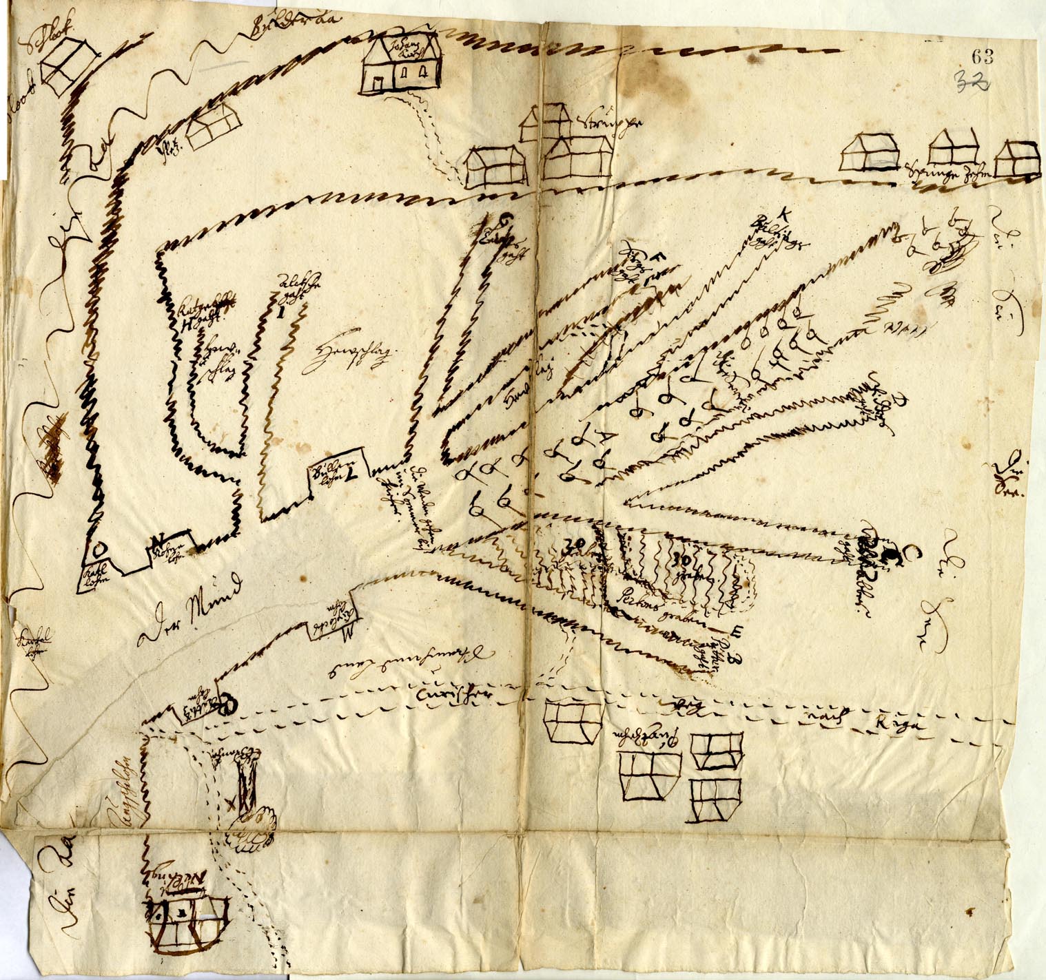 14. Fishing locations at the mouth of Lake Babīte. 1636. Scheme. LVVA, Collection 673, Inventory 1, File 146.