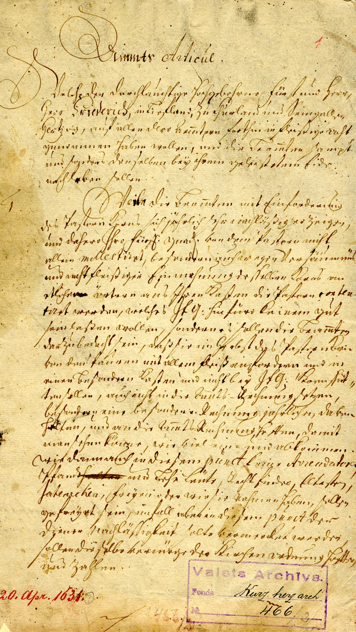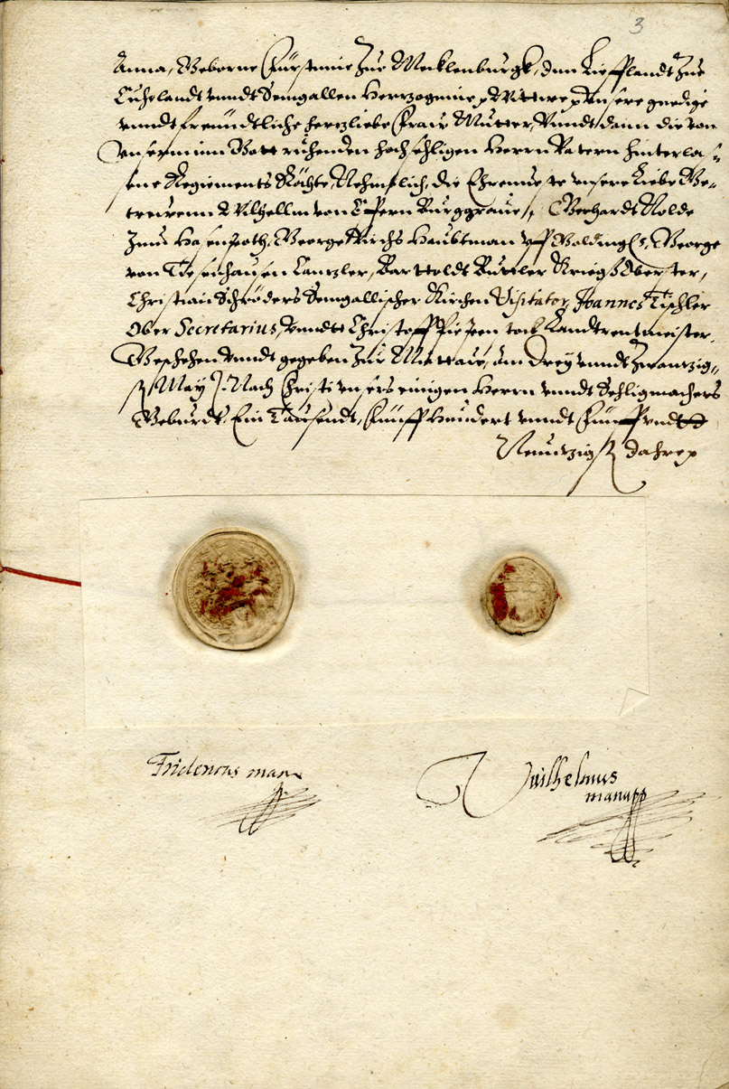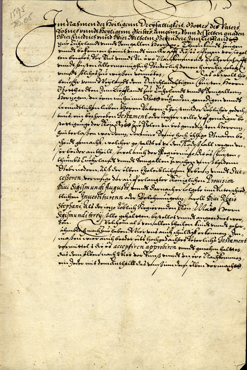 1. Agreement between Dukes Frederick and William on joint rule. Mitau/ Jelgava, 23 May 1595. LVVA, Collection 554, Inventory 3, File 34.