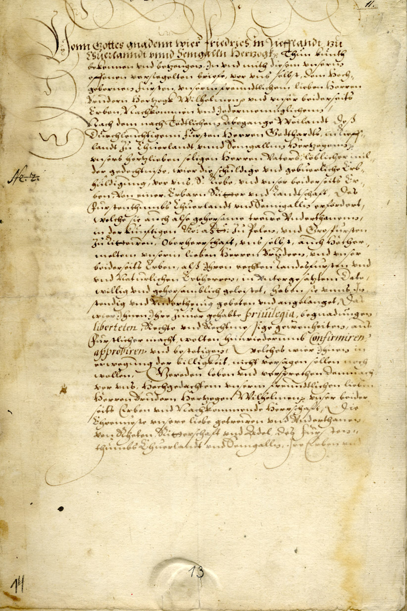 3. Assurance by Duke Frederick to the nobles of the duchy. Mitau/Jelgava, 12 July 1587. Excerpt. LVVA, Collection 640, Inventory 4, File 241.