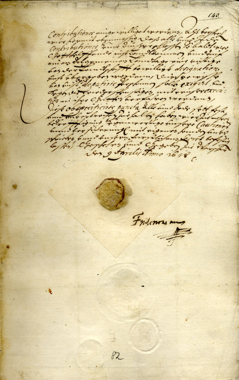 13. Agreement between the Duchy of Courland and the city of Riga on fishing in Babbit-See/Babīte-Lake and the Semgaller-Aa/Lielupe-River. Puxtzeem/ Pukstciems, 19/29 February 1636. LVVA, Collection 554, Inventory 3, File 1145.