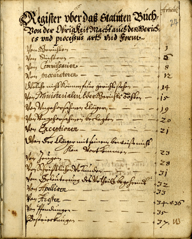 8. Contents of the “Statute of Courland” of 1617. Excerpt. LVVA, Collection 640, Inventory 3, File 628.