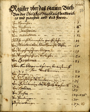The provision of a code of laws for the duchy had been envisaged already since the 1570s, but it was finally implemented by the commission led by Bishop Kucborsky. The “Statute of Courland” (Statuta Curlandica) was proclaimed along with the “Formula of Rule”. The first part of the statute covered the functions of the courts; the second part brought together civil law; and the third set out criminal law. Although the nobles of Courland proposed that the statute be reworked already in 1622, no new code was ever approved, and the 1617 version remained in force up to the 19th century.