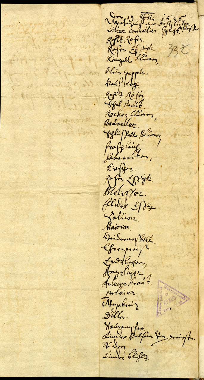 16. List of herbs used for making tinctures. 19 October 1636. LVVA, Collection 554, Inventory, File 195.