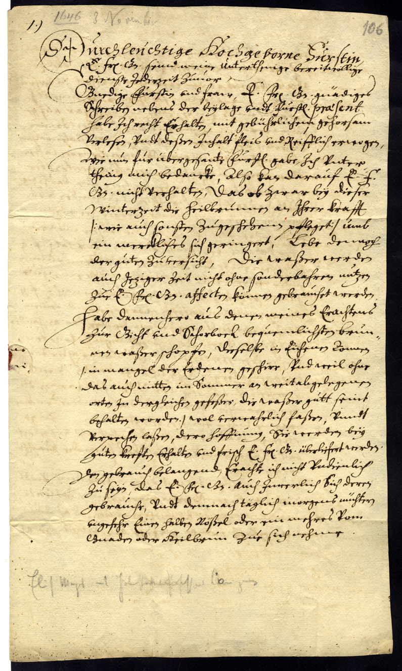 19. Letter from Hermann Conring to the duchess. Helmstedt, 3 November 1646. Excerpt. LVVA, Collection 1100, Inventory 13, File 722, Volume I.