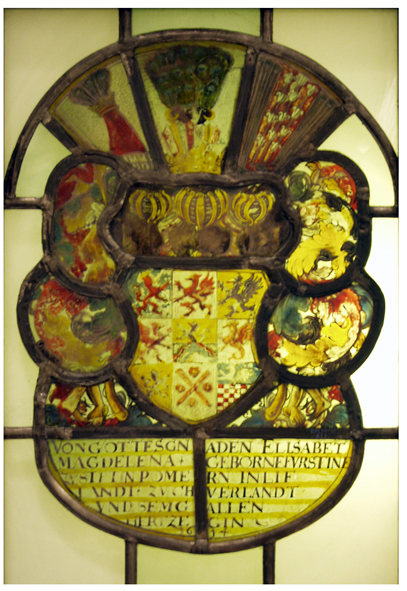Stained glass windows with the arms of the duchess and Duke Frederick also adorned the windows of the church in Grenzhof/Mežmuiža.