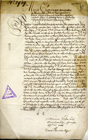 Also preserved is the duchess' will (LVVA, Collection 554, Inventory 3, File 34, Pages 2634), compiled at the same time as the codicil. The duchess wished to be buried in the ducal vault of Mitau/Jelgava Castle Church and that the funeral ceremony be led by the court pastor Georg Mancel. Elisabeth Magdalena made her husband Duke Frederick the sole heir. The codicil also expresses the request that an altar be created and erected in Holy Trinity Church in Mitau/Jelgava, if she does not manage to do so during her lifetime, and lists bequests to churches in Mitau/Jelgava, the almshouse and the widows' hospice, and to pastors, courtiers, managers of manors and servants.