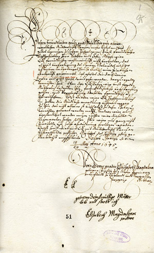 15. Letter from Elisabeth Magdalena to Duke James. Doblen/Dobele, 19/29 May 1645. LVVA, Collection 554, Inventory 1, File 198.