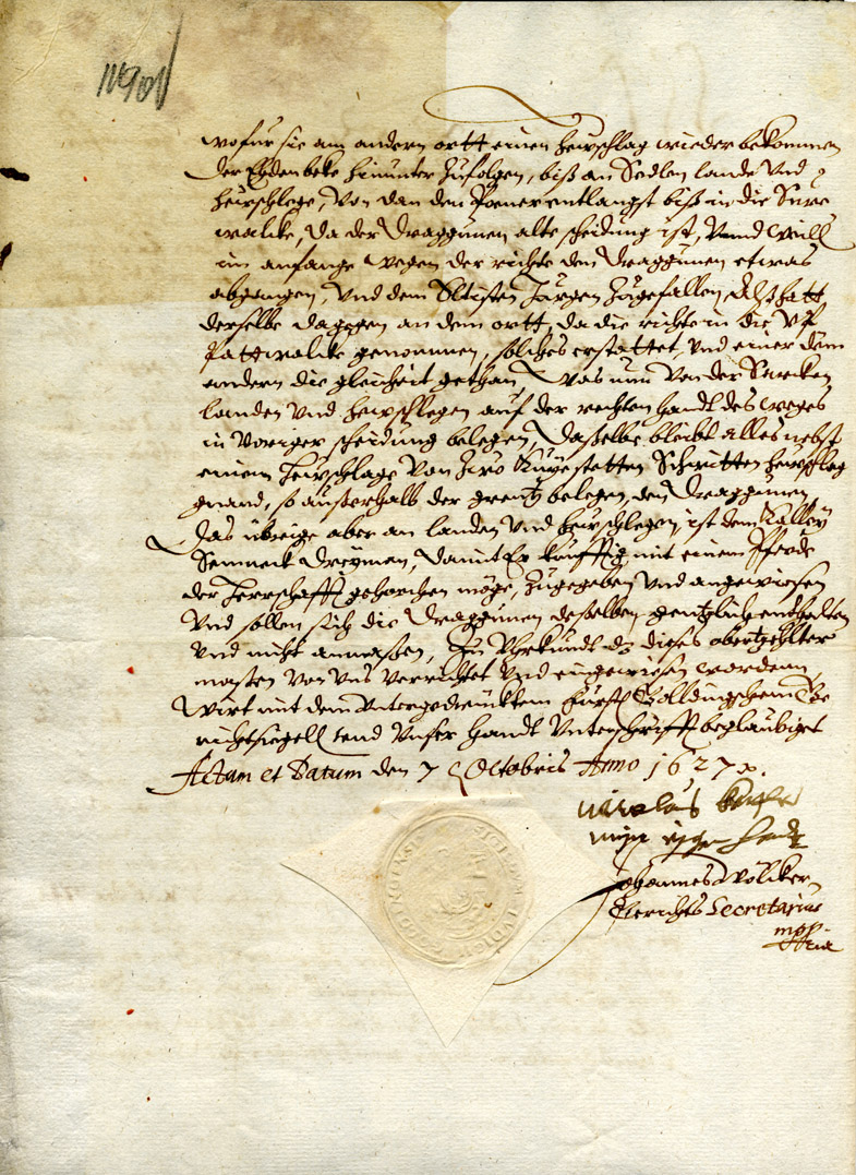 3. Description of the boundaries of the land of the Dragunen family, approved by Nikolaus Kettler and Johaness Wölcker, secretary of the Goldingen/Kuldīga Court. 7 October 1627. LVVA, Collection 554, Inventory 3, File 1133.