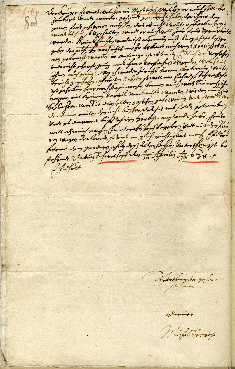 6. Report to Elisabeth Magdalena from Michael Sergest, the duchess' secretary. Schwethof/Svēte, 6/16 April 1638. LVVA, Collection 554, Inventory 1, File 194.