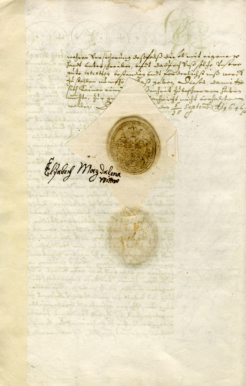 15. Declaration by Duchess Elisabeth Magdalena. Doblen/Dobele, 5/15 September 1646. LVVA, Collection 554, Inventory 1, File 1761.