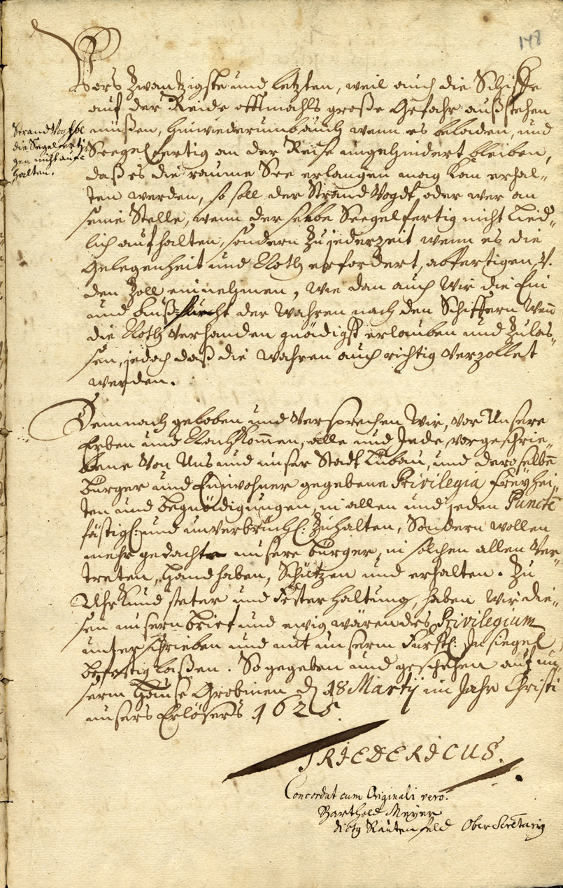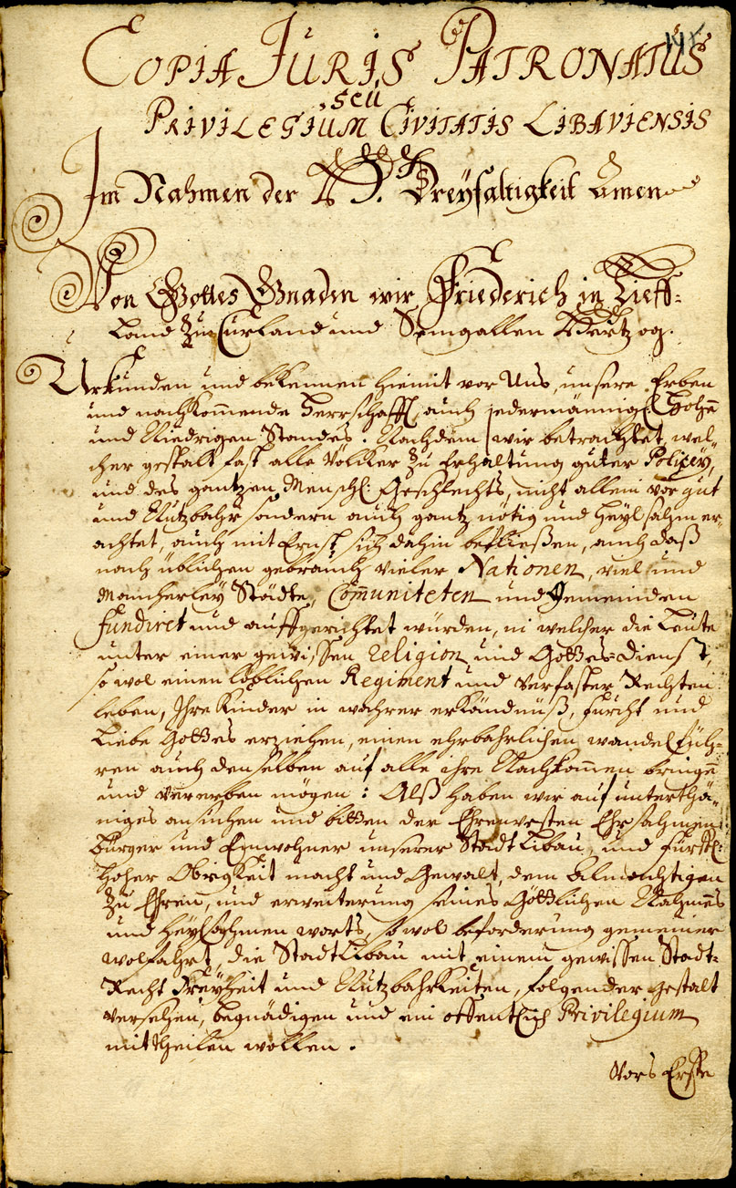 6. Privilege granted by Duke Frederick to Libau/Liepāja. Grobin/Grobiņa, 18 March 1625. Copy. Excerpt. LVVA, Collection 7363, Inventory 3, File 471.