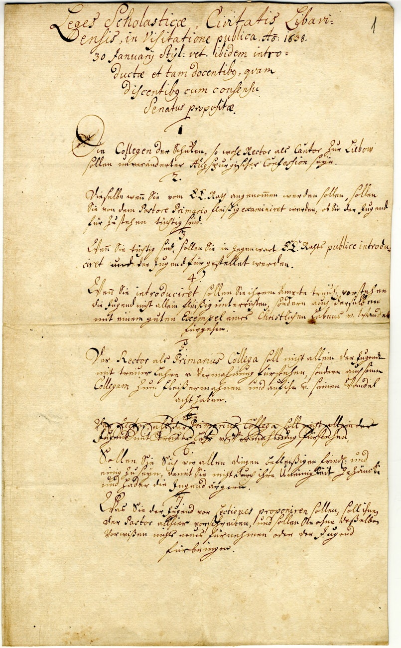 8. Libau/Liepāja town laws on schools. 30 January 1638 (old style). Copy. Excerpt. LVVA, Collection 650, Inventory 3, File 864.