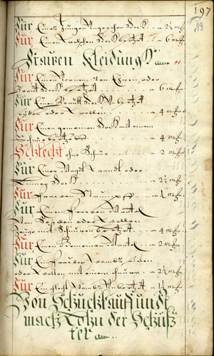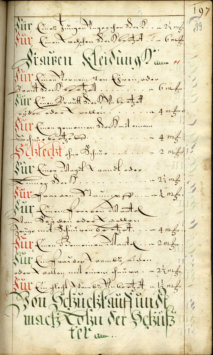 The “New Police Regulations” approved by Duke Frederick, repeated the previous regulations almost entirely, along with a string of supplements, mainly relating to matters of town administration. For example, henceforth the town council had to include the Town Mayor (Bürgermeister), the bailiff (Vogt) and 10 councillors. The prices of products of several different crafts were laid down. For example, a bride’s gown cost 46 marks, an ordinary woman’s gown cost 24 marks, and stockings cost half a mark. Since the townspeople were not observing the earlier regulations on festivities and were still dressing too lavishly, the police regulations once again included articles regulating the dress, as well as weddings, christenings and funerals.
