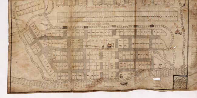 16. Plan of Friedrichstadt/Jaunjelgava. Drawn by the duke’s court surveyor Tobias Krause on 23 October 1646. Detail of a copy made in 1786. LVVA, Collection 183, Inventory 93, File 425.